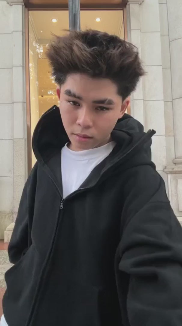 Le textile est épais (420 GSM) mais respirant. Il protège du vent et du froid sans étouffer. Parfait pour automne, hiver, soirées, déplacements et studio.